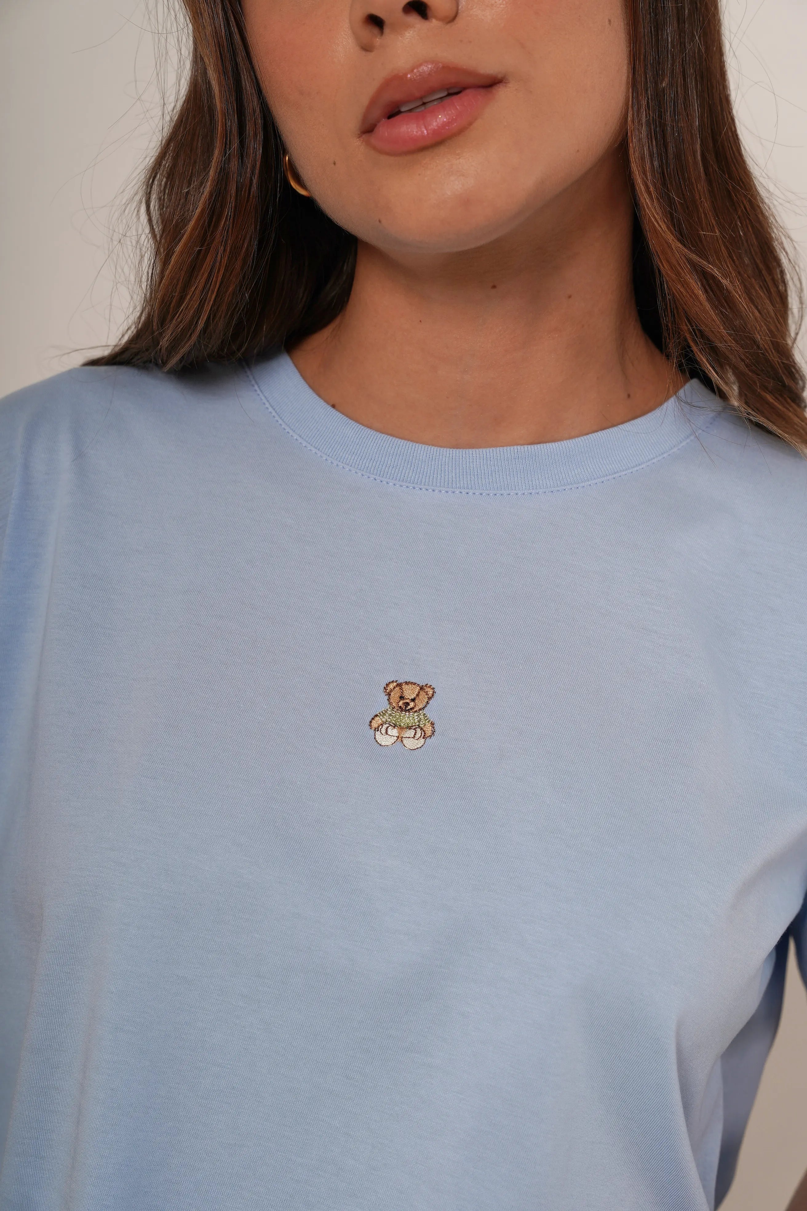 Confeccionada en 100% algodón, brinda suavidad y frescura al tacto. Su corte recto cae naturalmente hasta la cadera, mientras que el cuello redondo en contraste y las mangas cortas aportan un acabado versátil.