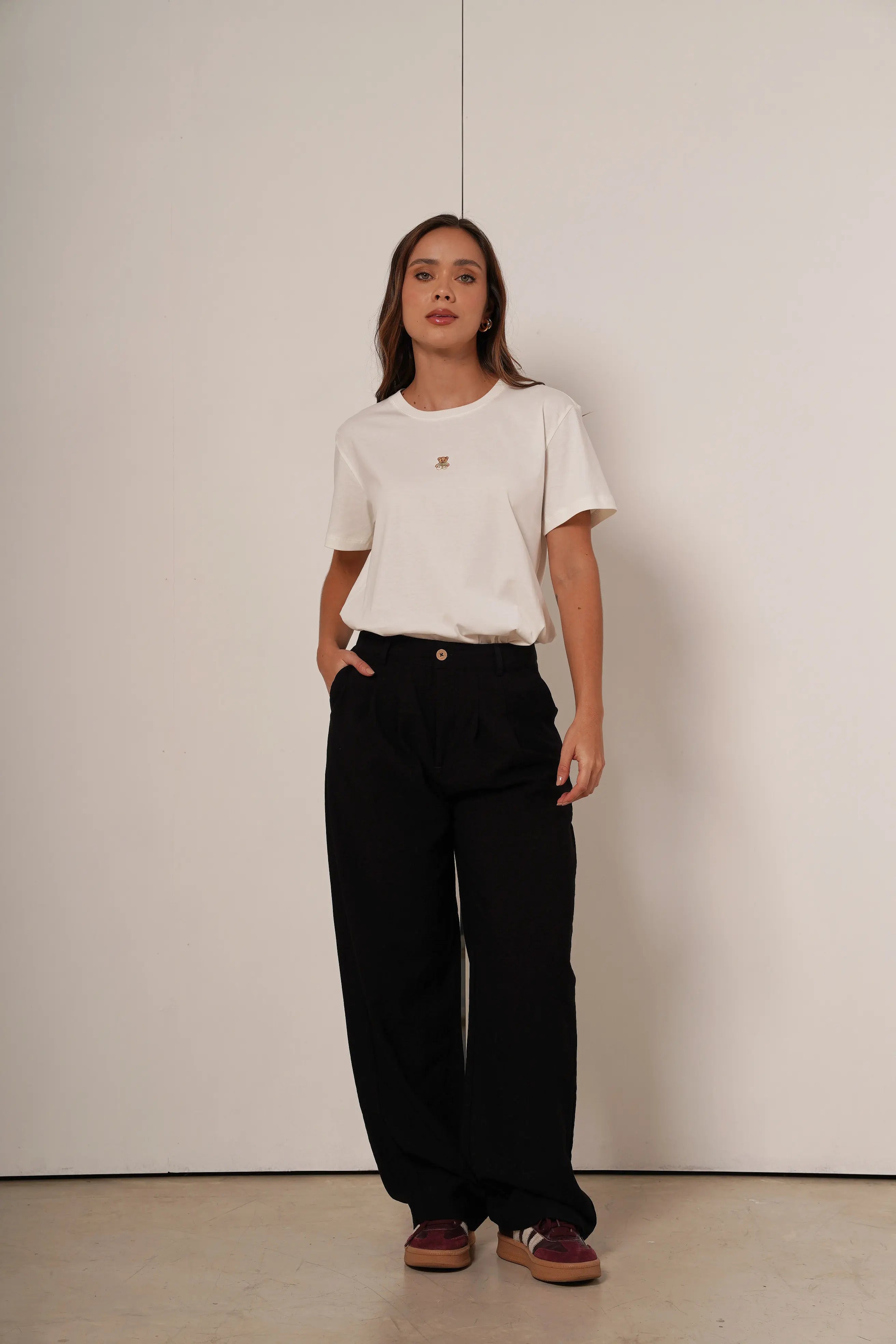 Camiseta Regular Fit con corte clásico y equilibrado, diseñada para ofrecer un estilo limpio y atemporal.