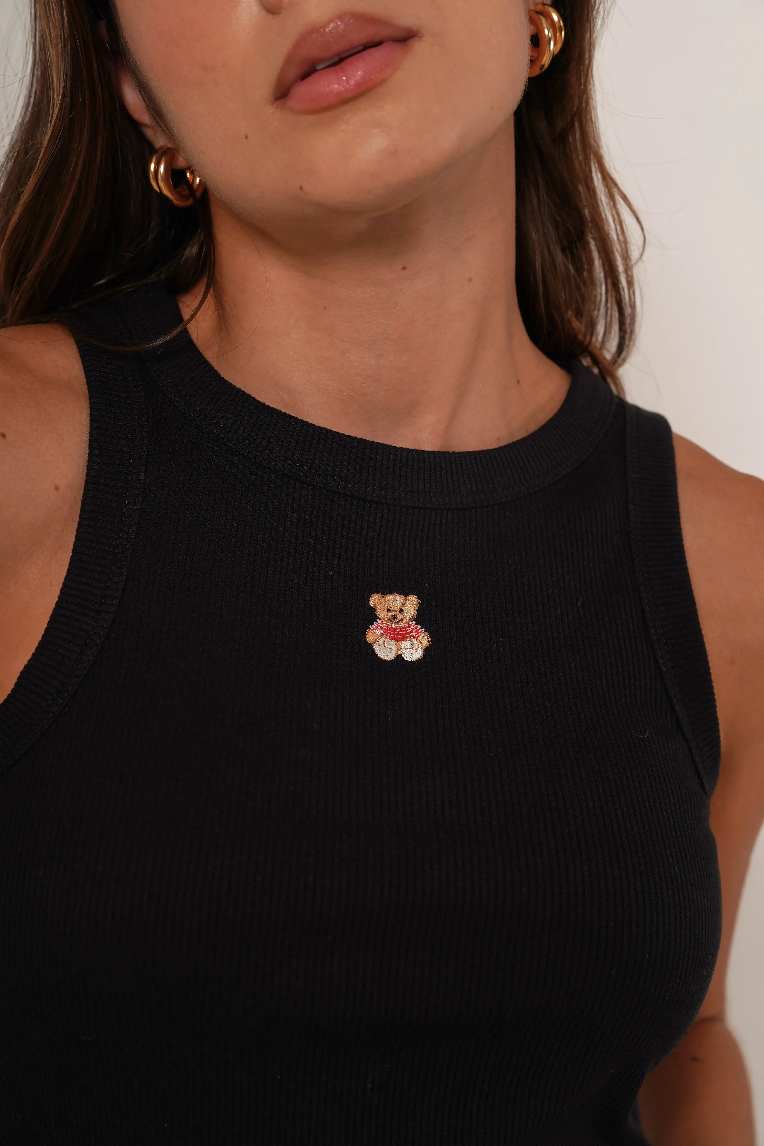 Tank top blanco de punto canalé de silueta ajustada, tipo de largo del top medio y rib alrededor del cuello y mangas. Material: Poliéster 94.0%, spandex 6.0%.