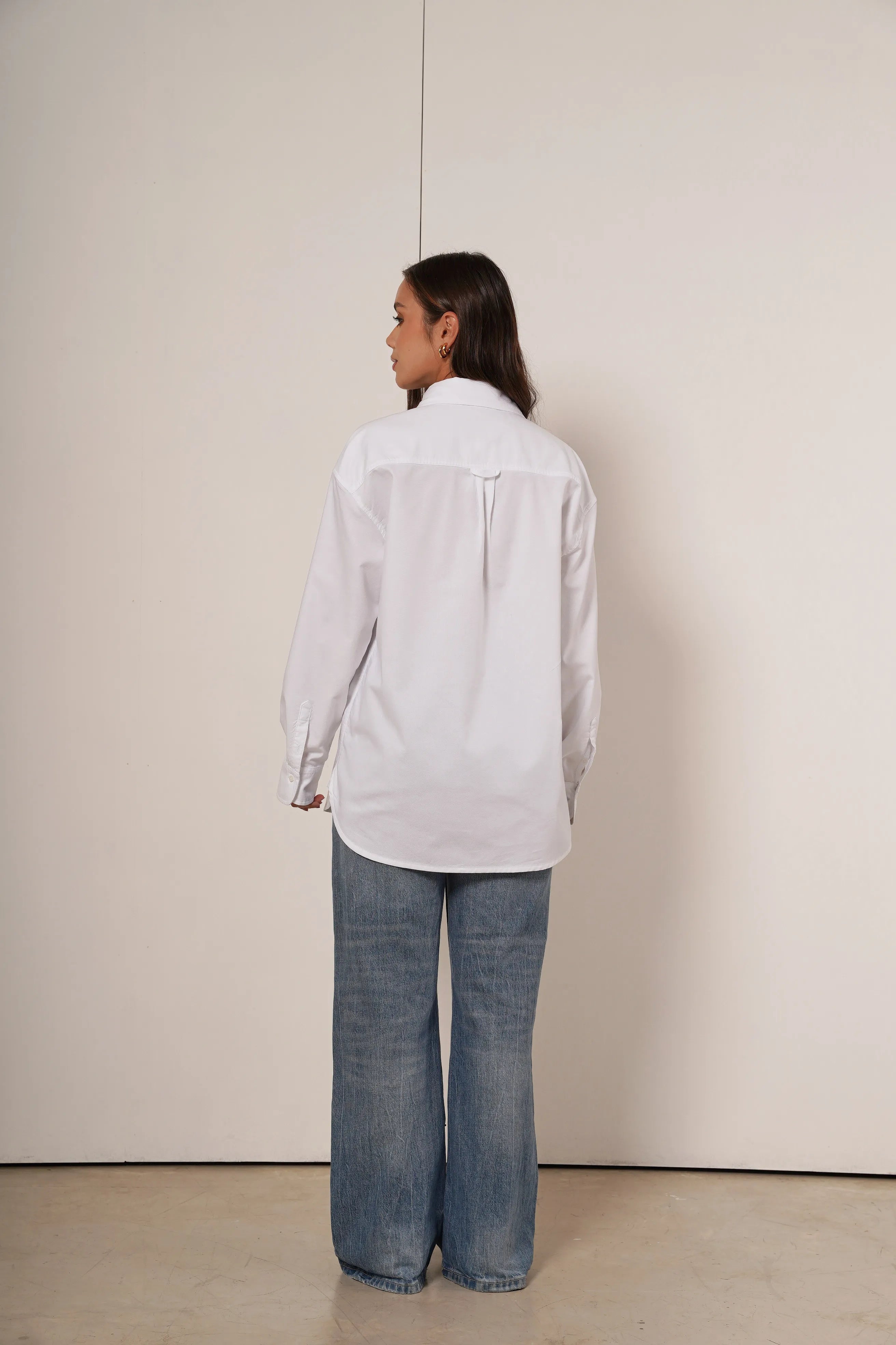 Camisa Blanca de botones tipo Oxford, confeccionada en 100% algodón de alta calidad, ofrece un ajuste oversized, El toque especial está en su delicado bordado de teddy que transmite un sutil romanticismo